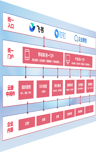 对协作平台提供支持服务,,支持企业应用与协作平台对接,,,包含组织同步、、消息集成、、待办集成等。。支持目前主流的协作平台:钉钉、、、企微和飞书。。。